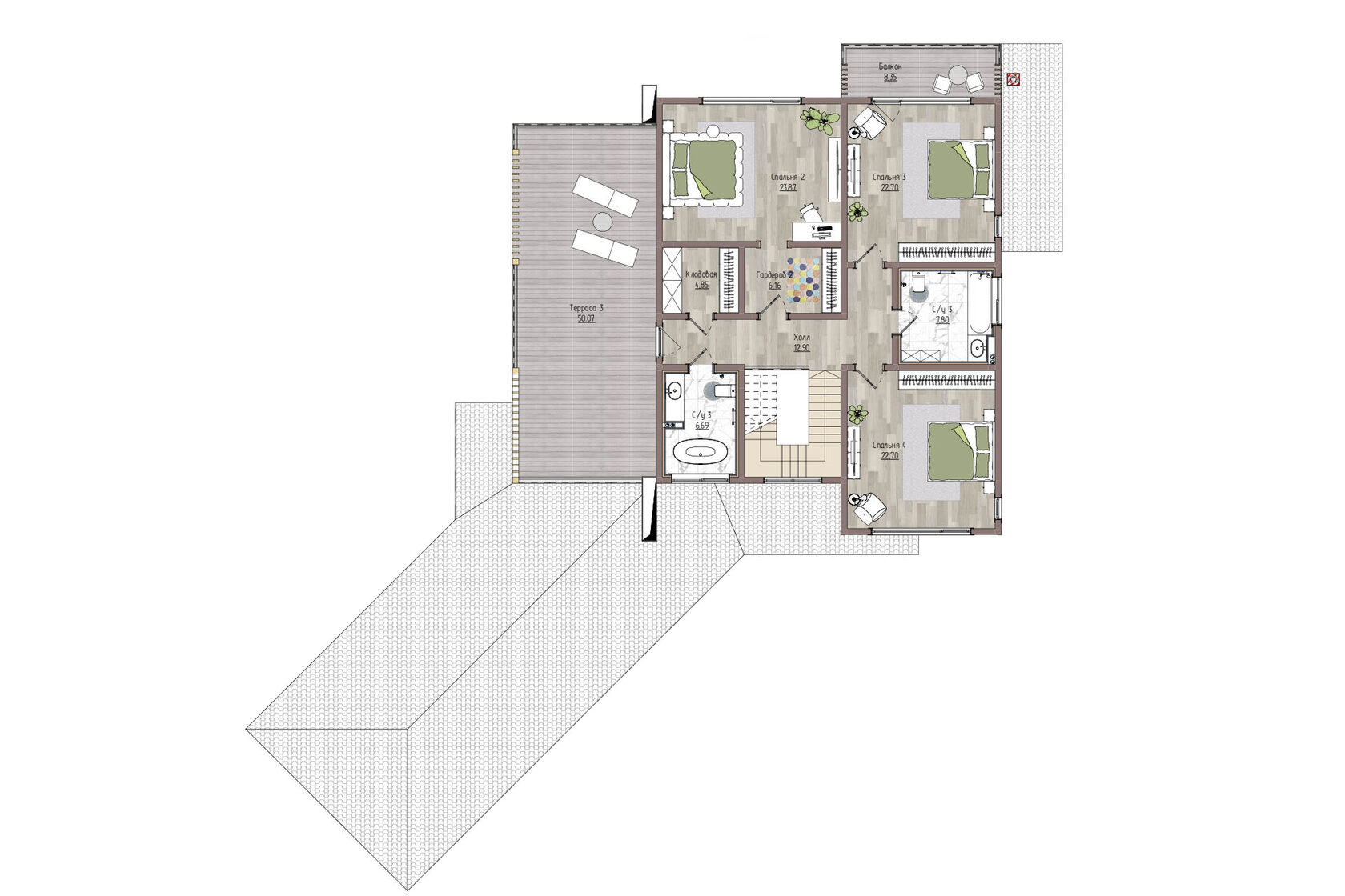 Все зависит от предпочтений клиентов. Компания постарается реализовать по возможности любую идею. Кстати, с террасы и крыши гарантированы идеальные виды, которые добавят еще больше уютной атмосферы дому.